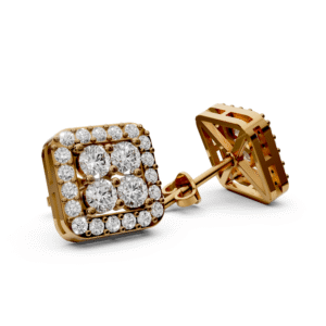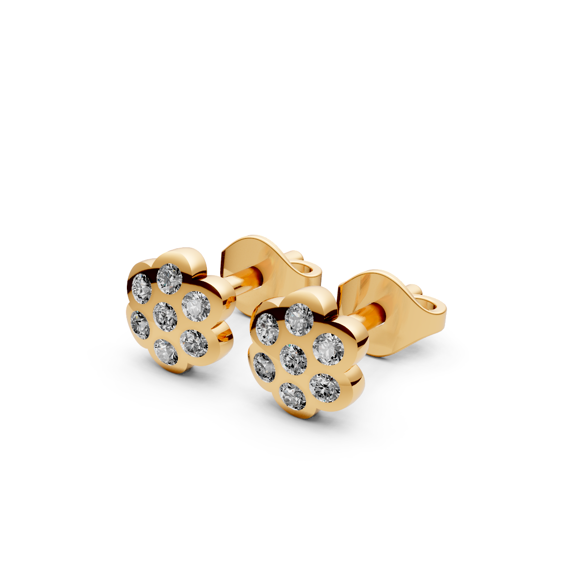 Earring showcases a cluster of seven round brilliant-cut diamonds, pavé-set to form a dazzling bloom.