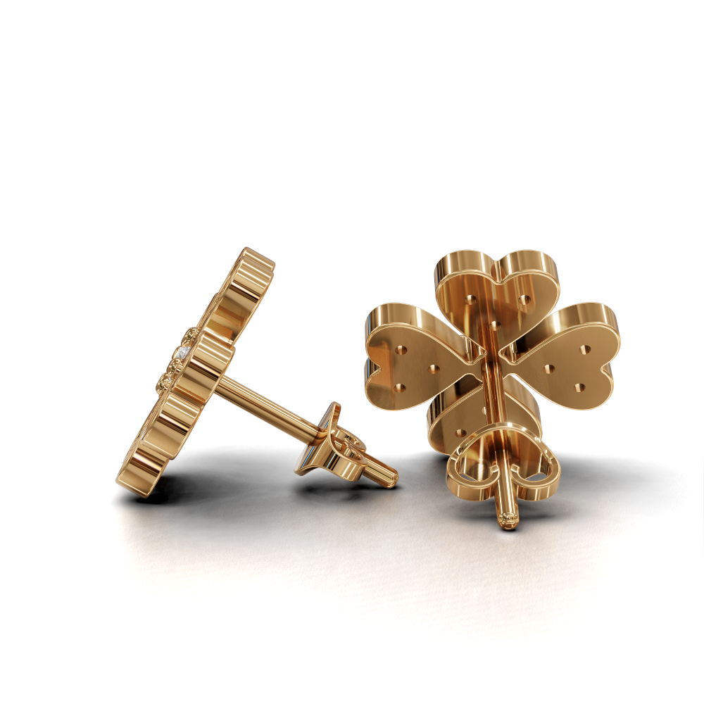 Elegant earrings are designed in the shape of a four-leaf clover, symbolizing luck, prosperity, and beauty.