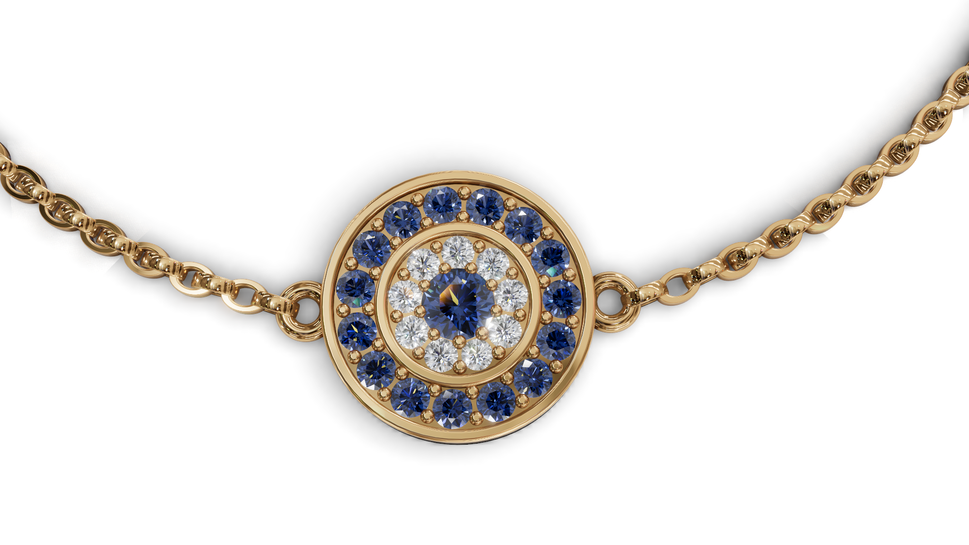 Symbolizing clarity, intuition, and timeless beauty, the design is inspired by the ancient talisman of the “evil eye,” believed to ward off negativity and bring good fortune.