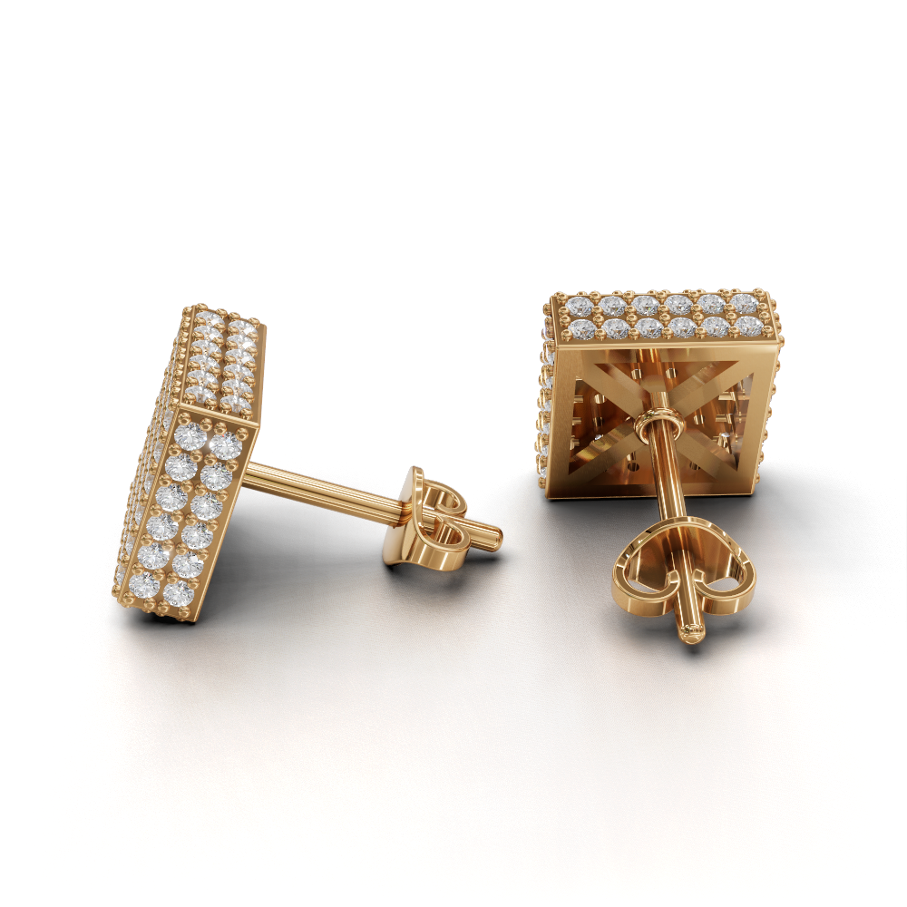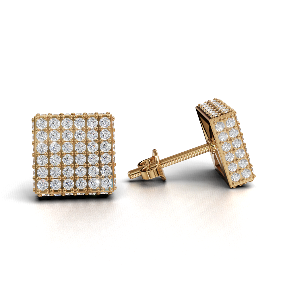 Make a powerful statement with these Ear Rings. These square-shaped earrings are crafted in rich yellow gold and set with a perfectly aligned grid of brilliant-cut diamonds on all visible sides
