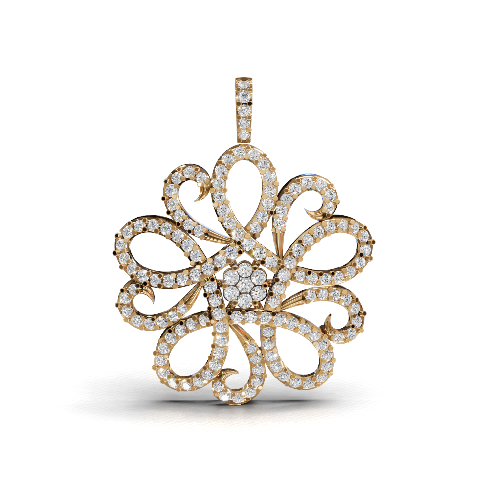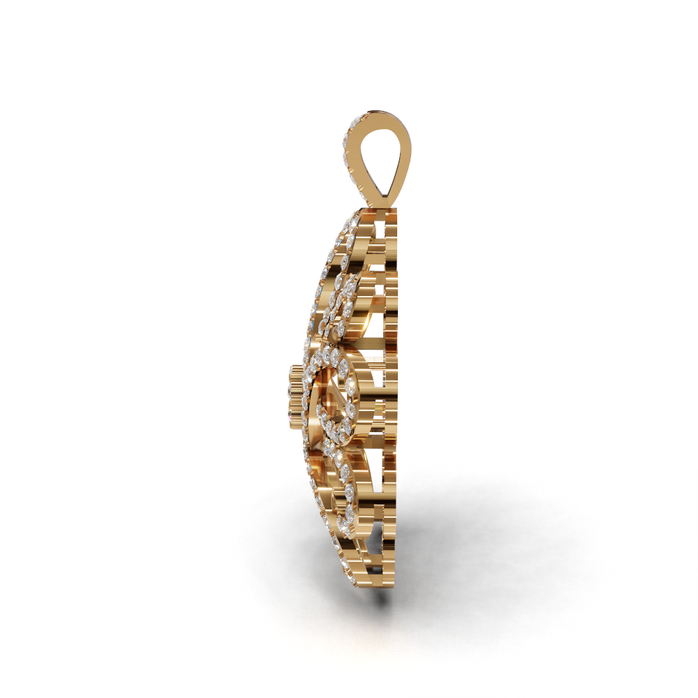 The graceful curves and openwork design lend an air of elegance and sophistication, making this pendant a statement accessory for special occasions.