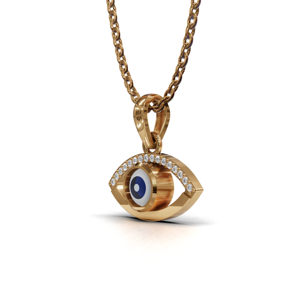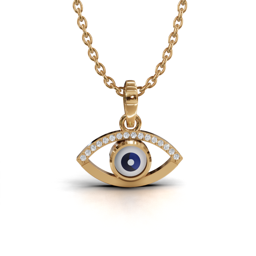 A modern take on the classic evil eye, this pendant is both a powerful talisman and a bold fashion statement.